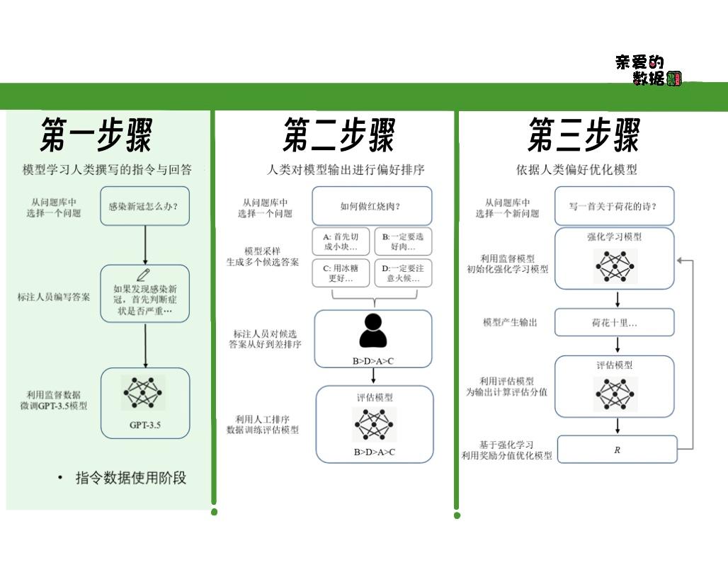 在第一个步骤中,通过指令数据进行有监督学习,至关重要。