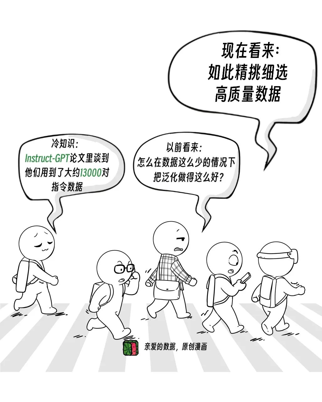 对比预训练环节的数据多来自于互联网数据爬取,需要经过清洗,抽取等冗长过程,指令数据的构造是另一种难度。