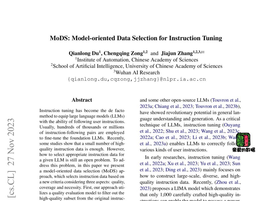 我认为论文题目可以叫,大模型指令数据高效选择方法MoDS。论文回答了,如何为LLM选择合适的指令数据?