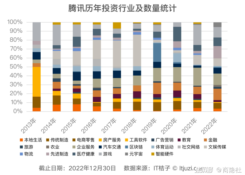 这从腾讯的投资上也能看得出。近几年,有“半投资公司”之称的腾讯在投资方面放缓了脚步,2022年的投资数量与金额几乎回到2014年的水平,不过在看到降速的同时,还能看到腾讯投资已经逐渐“转向”——即从ToC 到ToB、从消费到科技、从国内到海外。也许,腾讯正试图寻找能够影响未来世界的“新兴”行业。