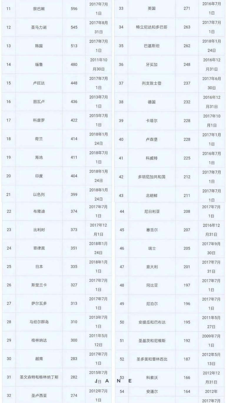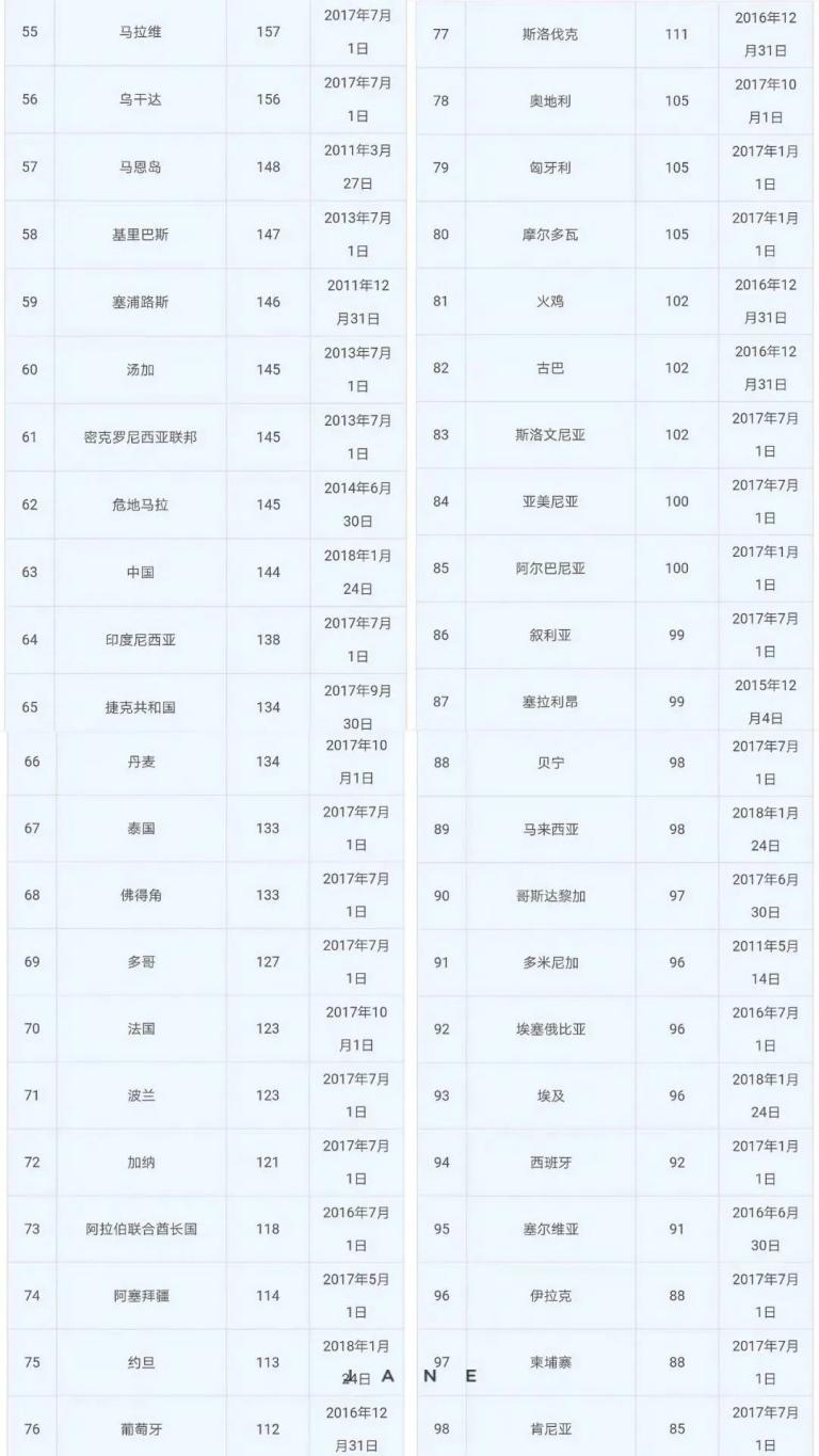 世界每平方公里人口密度达100人以上国家排名: