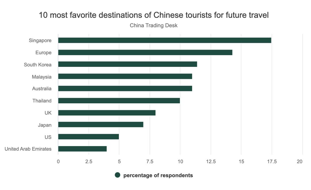 △新加坡成为最受中国游客欢迎的旅游目的地。(图源:China Trading Desk)这对新加坡而言可能是意外之喜。