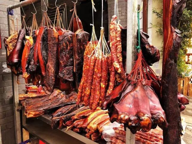 腌腊肉是川人必备“年货”之一。农历十一月,邻里院坝的主妇们便相约一起,熏腊肉,灌香肠。她们买柏枝、糠壳,烟熏腊肉时青烟缭绕,一阵阵柏枝香,自然也是主妇们斗巧的时光。
