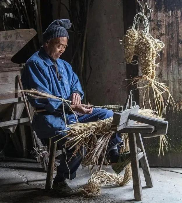 草鞋是一个时代的印记,老人们常说一句俗语:一罗穷,二罗富,三罗四罗住瓦屋,五罗六罗挑屎卖,七罗八罗穿草鞋,九罗十罗点状元。因此草鞋在百姓的心目中,留下了深刻的印象。编织草鞋,一坐就是一天,一天天就是一个月,月月不停歇就是一年,指头上的艺术在乡间蔓延,时光就融在了脚底的舒适里。