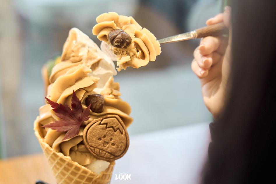 这次我们点了这份非常火的秋季限定栗蓉冰淇淋。个头十分大,老板娘还十分贴心的拿了一个冰淇淋支架,份量十分足,两人食刚刚好。椰子和红茶冰淇淋搭配新鲜板栗仁,层次十分丰富,一种奇妙但口感却不违和的组合。每一层吃完都会发现新的惊喜,冰淇淋的口味是椰奶味道的,吃到最底下还有椰子冻和奶茶冻。