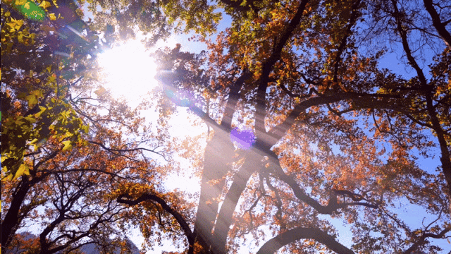 一片片枫叶在暖阳下摇曳