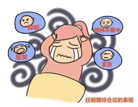 经前期综合征,就是指在女性来月经之前的1-2周时,周期性出现的一系列生理和精神情志方面的不适症状。比如身体出现头晕、头痛、腹痛、水肿、乳房胀痛、盆腔坠胀感,心理上比平时更烦躁易怒,甚至还有抑郁、焦虑、失眠等情况出现。而这些不适,在月经开始之后的1-2天自然消失。