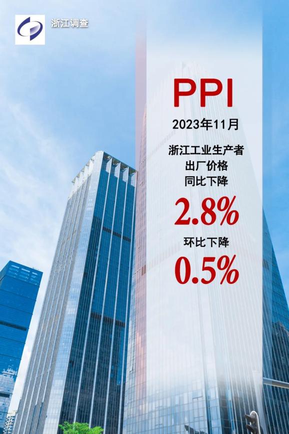 【数据发布】11月份浙江CPI同比下降0.1%,PPI同比下降2.8%