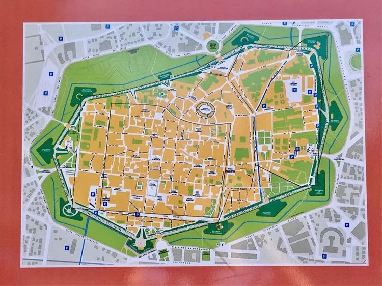 卢卡很小,城墙造于16世纪,墙厚20多米,有十个三角形凸碉,墙外有城壕。