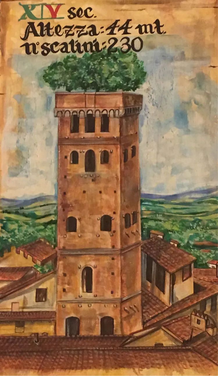 先去参观圭尼吉塔Torre Guinigi,登塔的门票3.5欧。塔上有一片栎树,因此俗称长树的塔。