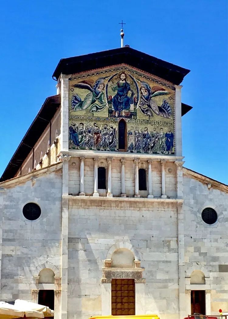 城里有一个小建筑,很不起眼,但是外型非常漂亮,就是这座圣弗雷迪亚诺圣殿,正面有一幅独特的彩色马赛克装饰,带有显著的拜占庭特色。