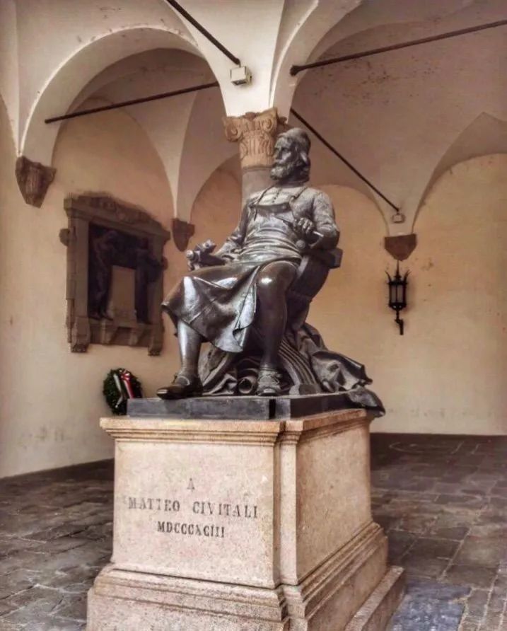 教堂设计师将自己安置在广场的一角,永远观望着他的作品。