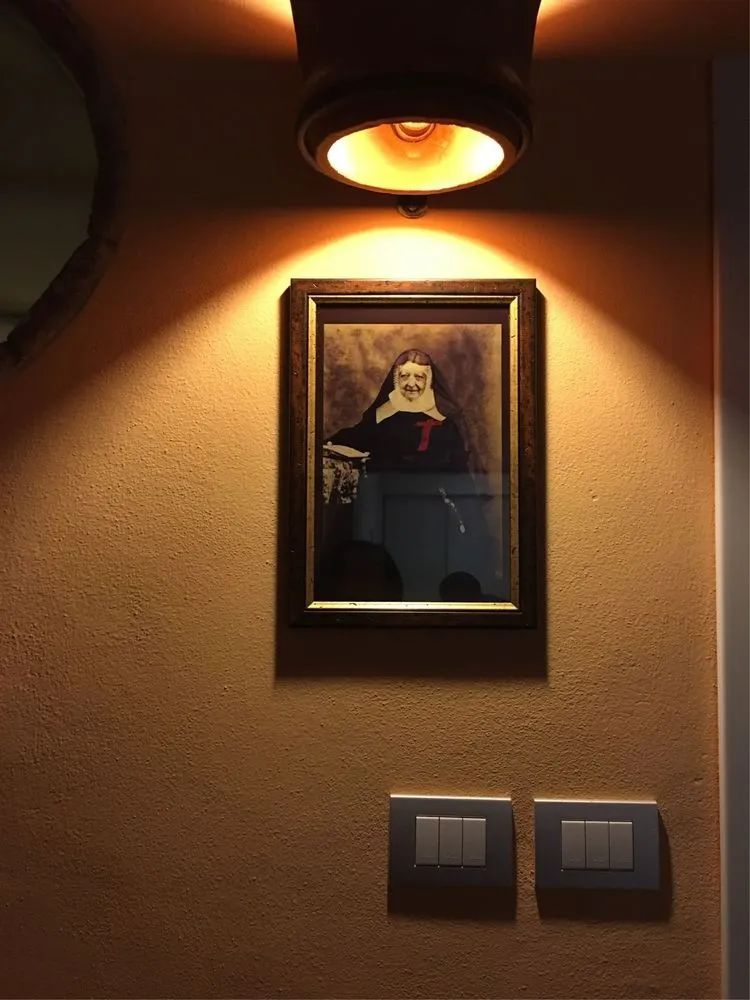 酒店在卢卡城外,曾是一座修道院,到达时已伸手不见五指。在LOFT客房的楼梯中,悬挂着一幅修女的画像,于一个陌生环境的夜晚,与一个不知来历的女人对视,是一件很神奇的事,感觉只能出现在电影中,让我想起了那部经典《时光倒流七十年》……