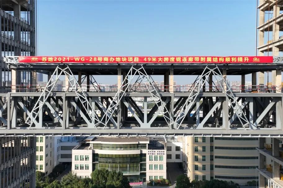 实现了项目双塔楼的高空“牵手”之约