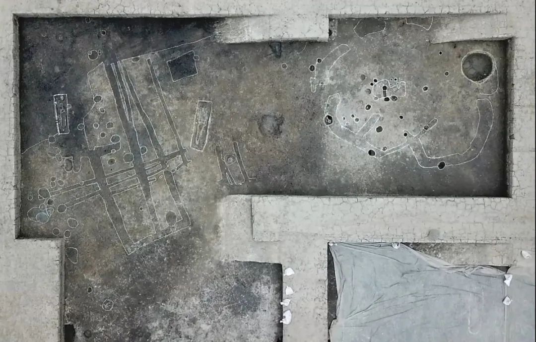 该遗址良渚文化时期(距今5300-4500年)主要发现遗迹为房址和墓葬。房址为单间或多间地面式建筑,由数段基槽和柱洞组成,平面形状为圆形或近长方形。