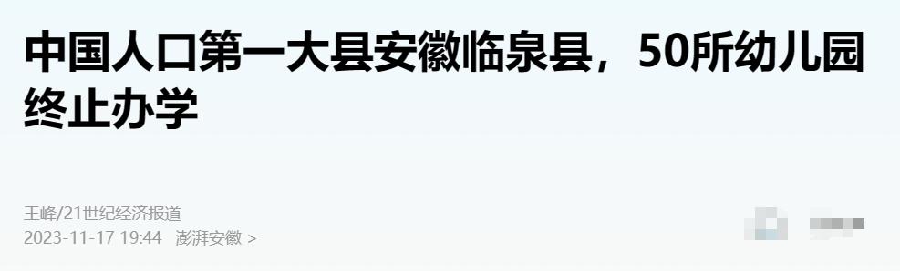 一个人口大县,一次性关闭了1/10左右的幼儿园,影响可想而知,遑论只有数十万人的小县?