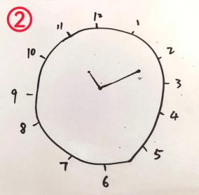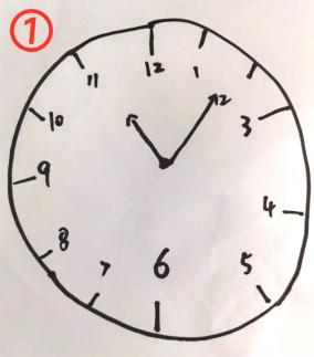 ③ 指针(1分):必须有两个指针且一起指向正确的时间;时针必须明显短于分针;指针的中心交点必须在表内且接近于钟表的中心。