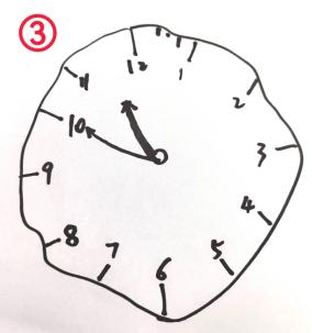 违反上述得分点的任何一项,此条均不得分。比如数字逆时针写,顺序错乱,画成方形,指针位置错误等情况。