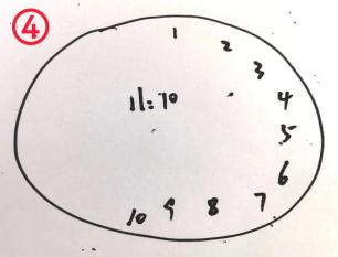 请拿出一张白纸,一支画笔,在纸上画一个钟表,填上所有的数字,指示出11点10分。
