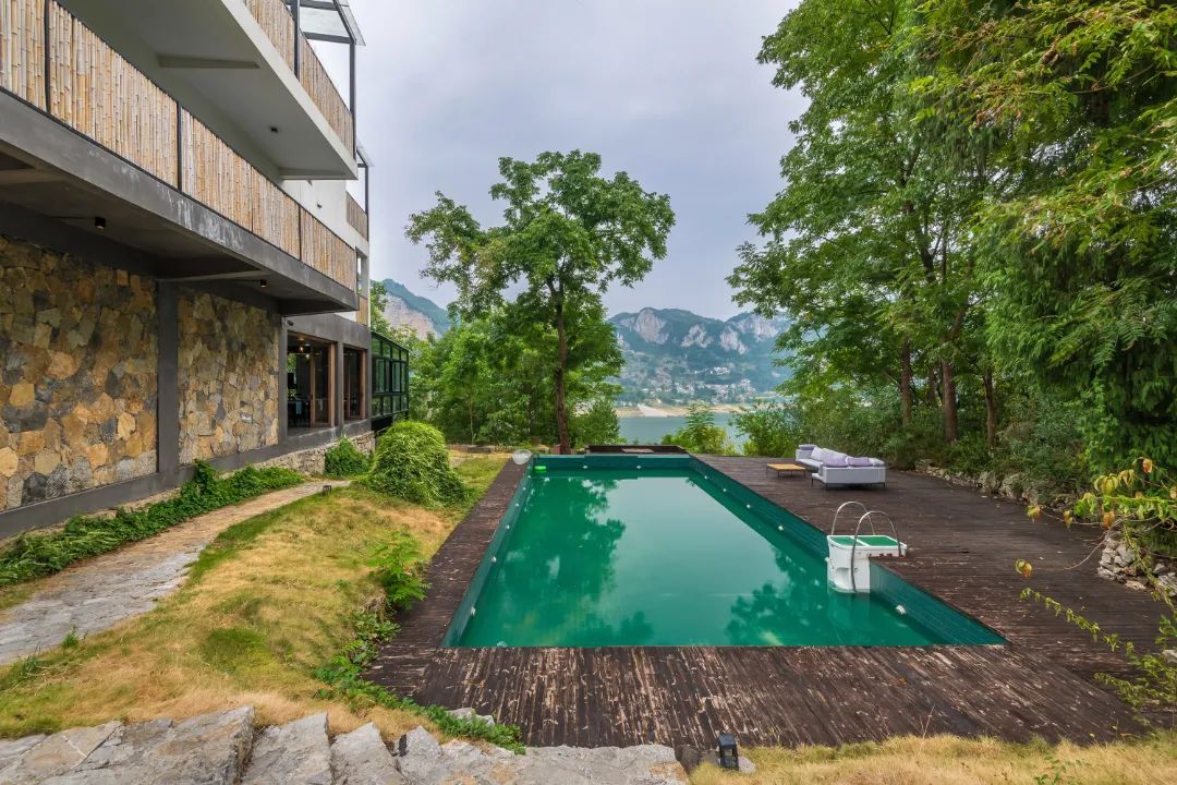 璞墟·化屋山河图精品度假民宿位于乌江源百里画廊景区内,在当地农户原有的宅基地的基础上建造而成,背对陡峭高山,直面恢弘壮阔的百里画廊山河美景,四周青山碧水、茂密翠林环抱。这里一户一院,独栋成房。