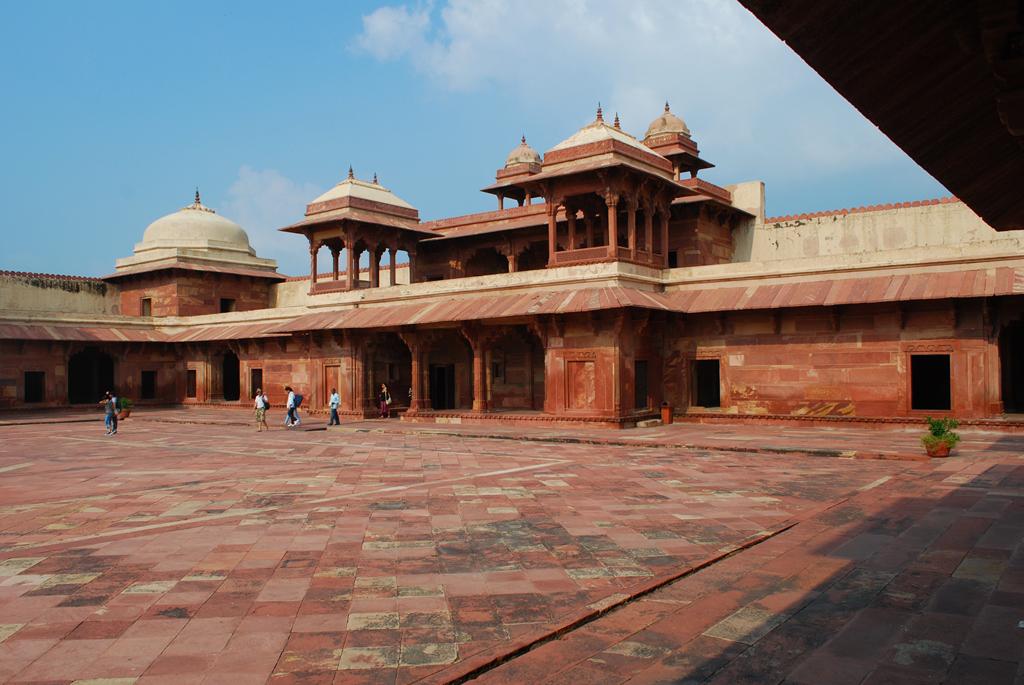 其中有一座被称为珠妲·拜宫的建筑,曾经被认为是皇后珠妲·拜的住所,其墙上的支架源自古吉拉特建筑,被视为阿克巴对其印度教配偶的信仰的尊重。不同宗教的融合也在为阿克巴提倡的“神圣信仰”打下基础,弱化对单一宗教圣徒的崇敬,将其转化为对皇帝的个人崇拜,即皇帝并非上帝的代理人。他“引入了印度的皇室概念,来宣称他不受伊斯兰神职人员的管辖。以实现个人的铁腕统治和帝国的印度化。这些建筑以及分隔它们的宽敞的露台和庭院构成了皇权理论的几何化具现。”
