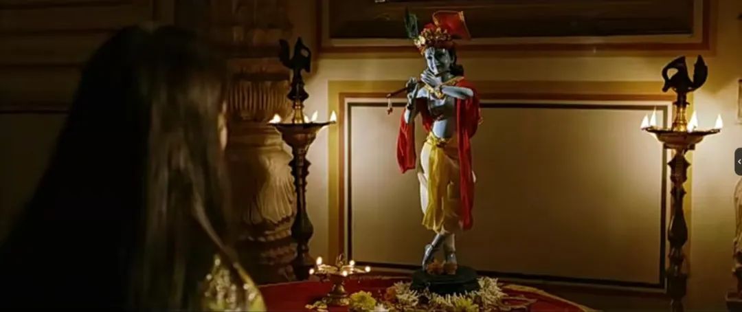 电影中的印度教元素则主要体现在信仰印度教的公主身上。公主供奉的神像拥有蓝色的皮肤,帽插孔雀羽,手持短笛,正是毗湿奴的第八个化身克里希那。而他最受欢迎的形态就是无忧无虑的牧童形象。他和他的作为凡人的爱人罗陀常常一起出现,被当作爱神供奉。在电影中不愿政治联姻的公主像神像祈祷,最终也与阿克巴两情相悦,成为了现实中的克里希那和罗陀。