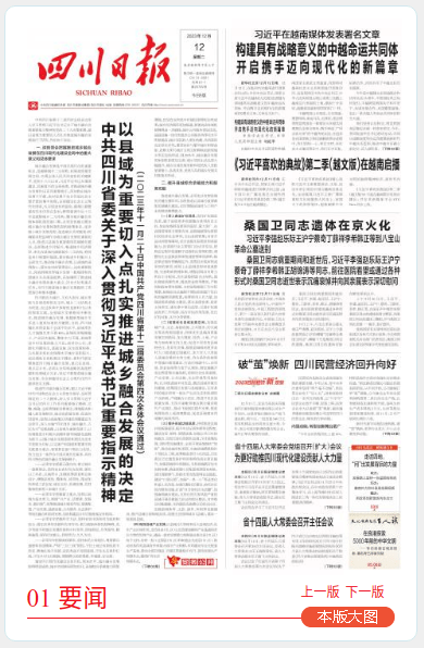 中共四川省委十二届四次全体会议深入学习贯彻习近平总书记关于城乡融合发展重要指示精神和党的二十大决策部署,就以县域为重要切入点扎实推进城乡融合发展进行了研究,作出如下决定。