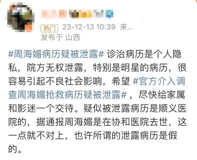 周海媚抢救病历疑泄露,北京警方已介入,医生解读病因