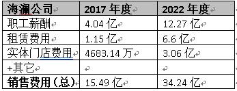 到2022年度,海澜的销售费用已经暴涨到34.24亿元。5年时间增长了超过18亿元。