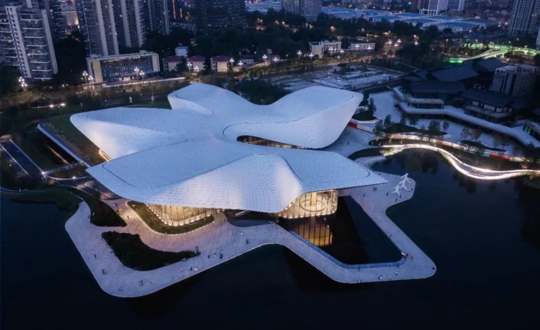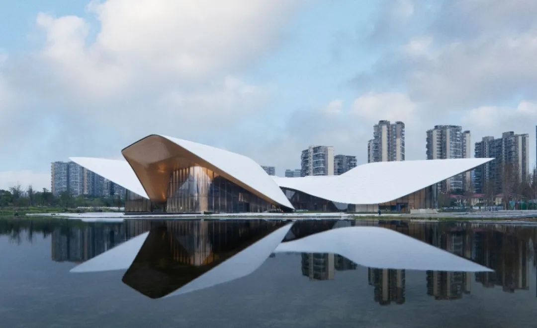 天府艺术公园作为一种新类型的城市文化艺术空间,将公园环境与艺术场馆融为一体。天府美术馆、当代艺术馆和人文艺术图书馆坐落于人工湖的两岸,三馆定位为城市级综合文化设施,构成集展览、收藏、研究、阅读、社教等多元功能为一体的新型城市文化集群。