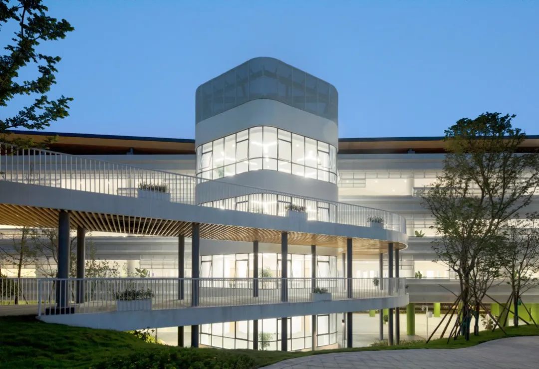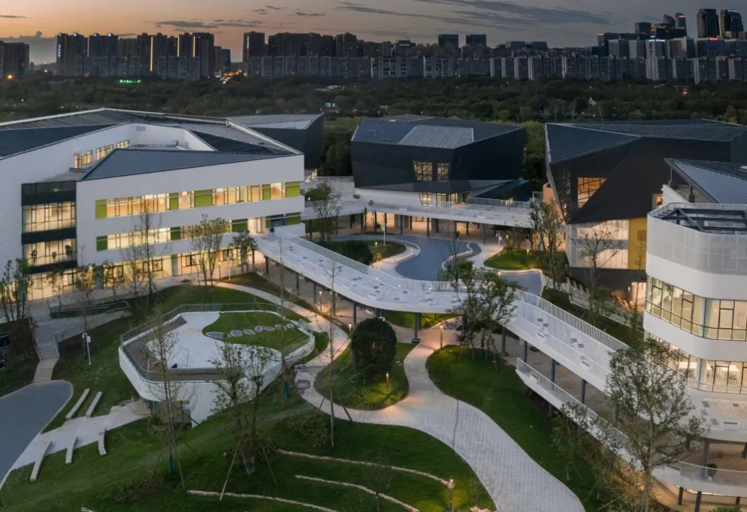 这所体现中法建交50周年深厚情谊的公立小学,用可自由奔跑的花园代替了传统操场,获得开敞的中心花园;其叠合地形处理所带来的台阶与坡道、架空层与风雨连廊,创造出丰富的地形体验与全天候活动空间,鼓励同学们在不同程度的围合与开放之中,亲近自然、发现探索。