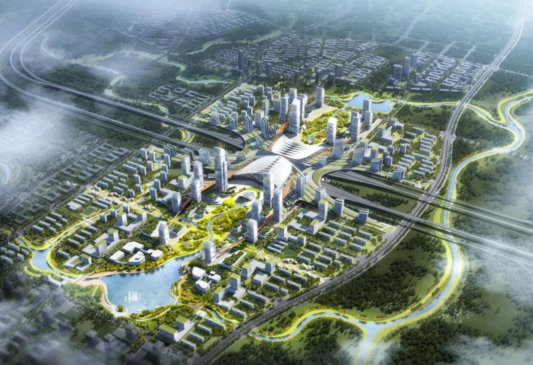 如何高效整合枢纽交通优势,充分利用景观资源,打造彰显中国地域文化的地标级城市客厅,建立新的产业人口增长极,成为设计的关键所在。面对复杂的需求,设计团队成功解决了现有高铁枢纽与城市的割裂现状,以交通枢纽作为城市生活的中枢,立体布局城市复合功能,打造空中-地面-地下多层级立体交通,让高铁枢纽与城市融为一体。巧妙利用当地生态资源,形成“一轴、一环、两廊”的生态格局,将枢纽融于自然,借“筑巢引凤”之意,打造深受市民欢迎的城市客厅。