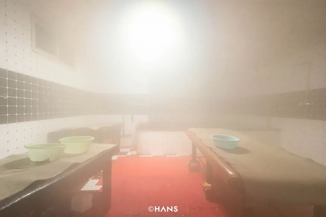 休息室设施老派,比较随意,一群人躺在靠近锅炉的沙发上睡觉,墙上有张皮帘子隔着浴池,拉开,就是热浪滚滚。
