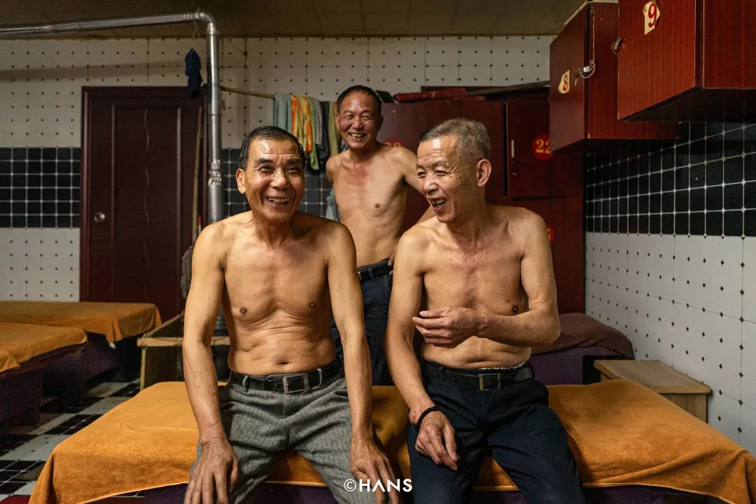 里头一间房传来噼里啪啦的声音,三个师傅打赤膊搓背,看上去都有七十来岁。雾气中,花岗岩般的肌肉在松弛的皮肤下波浪起伏。