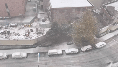 ▲济南由雨转雪,现在已变成鹅毛大雪,路上已有积雪。