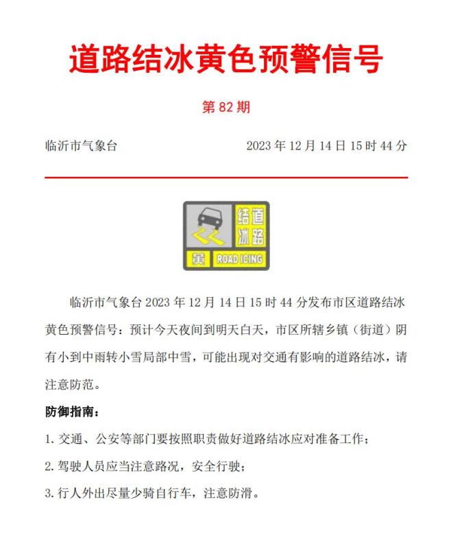 根据12月14日15时44分临沂市气象台发布的