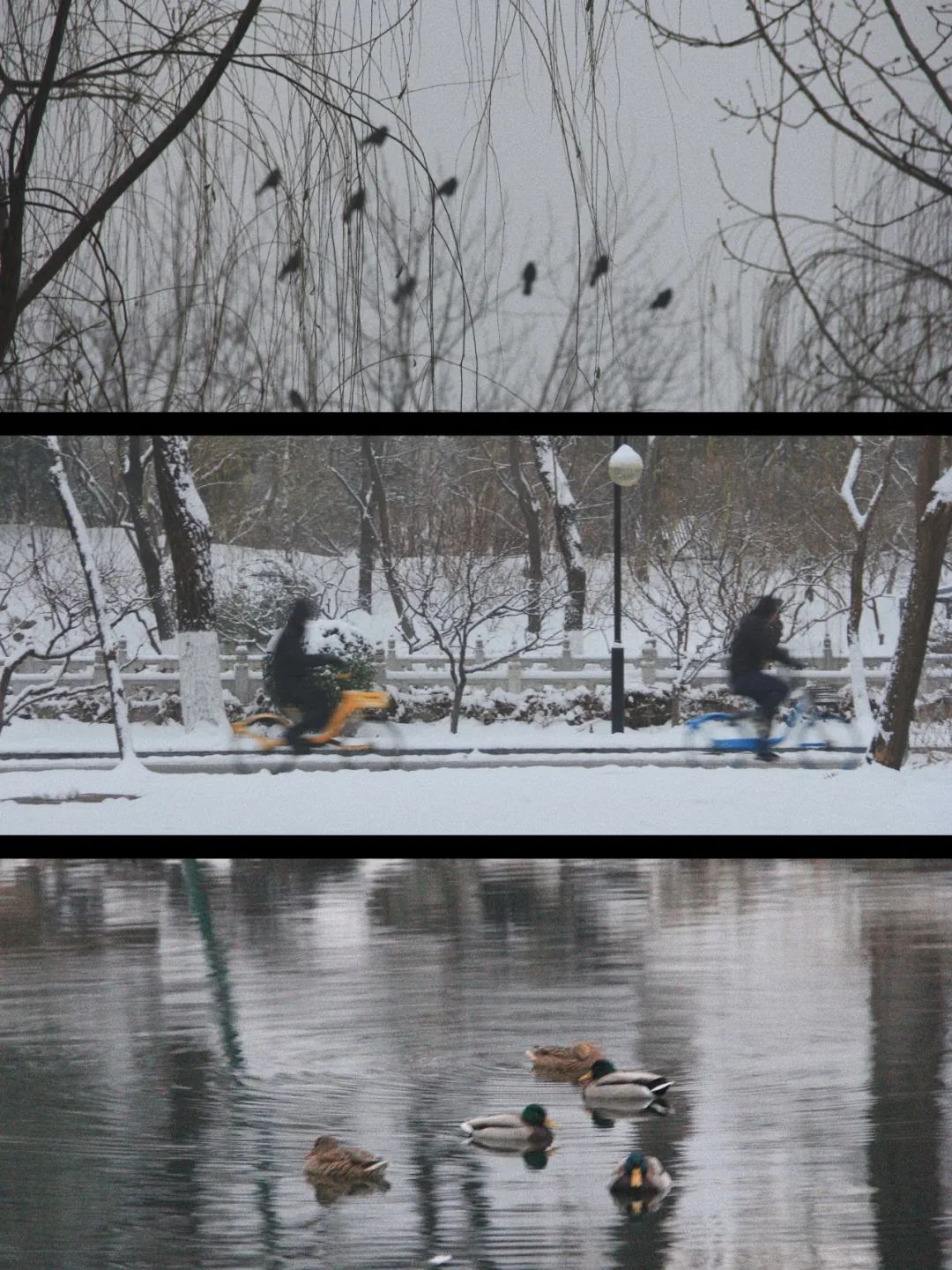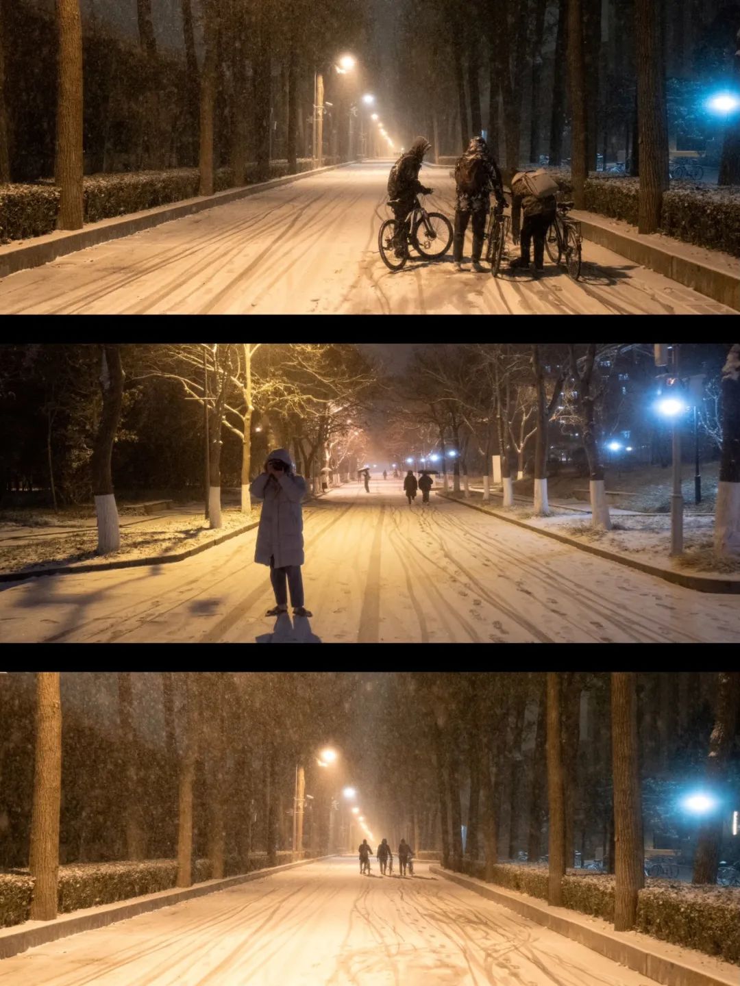 “怎么这么滑啊,冷死了”“他们没发现我在拍吧?”