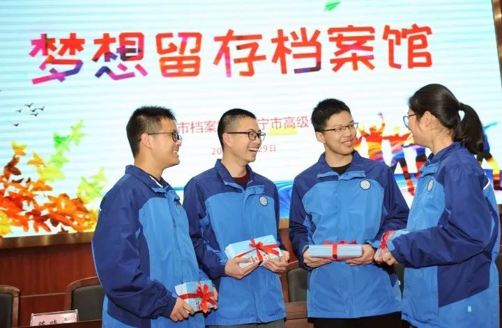 2019年3月29日,海宁市档案馆和海宁市高级中学组织的“梦想留存档案馆”活动在海宁市高级中学报告厅举行 海宁市档案馆供图2015年,海宁市档案馆首次面向高三学生推出该活动。2019年,在“给十年后的自己写一封信”梦想信件基础上,还增加了“录一分钟梦想视频”,以“信件+视频”的方式共同封存梦想档案。
