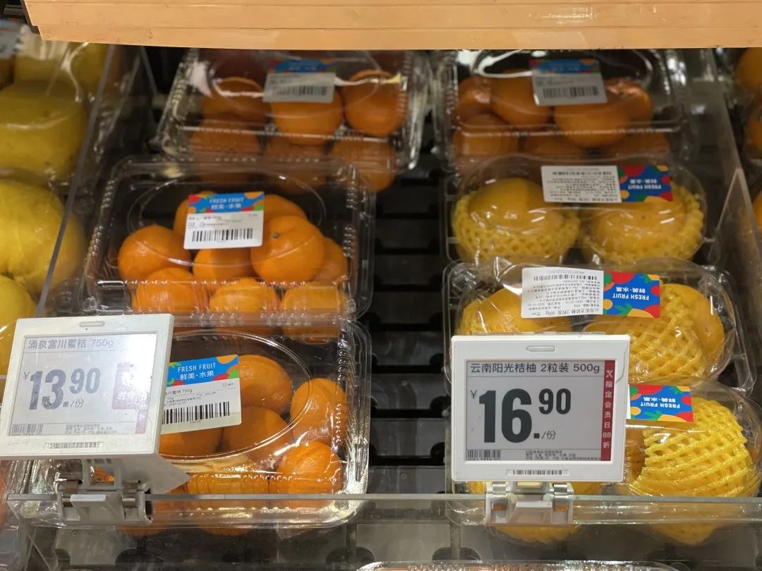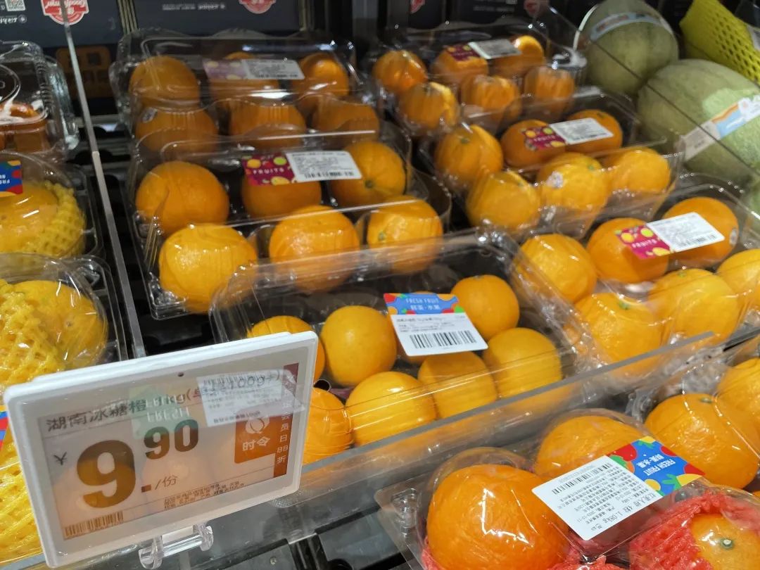在超市生鲜区,湖南冰糖橙、红美人柑、涌泉宫川蜜桔等水果被依次摆放在水果展台,商家还在摊位上张贴了种类区别、挑选方法、最佳赏味期等告示,让前来购买的市民了解详情,方便买到更适宜的水果。