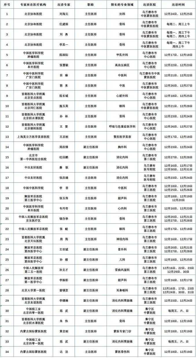 【关注】家门口看名医!乌兰察布市12月下旬部分知名专家出诊信息来了→