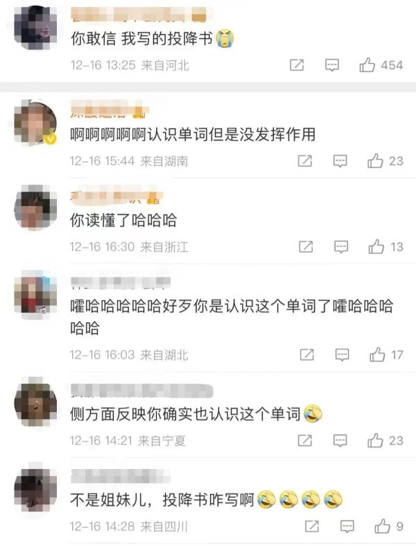 谁能想到大学四级英语考试的作文题,也能像高考作文一样出圈。凛冽的寒风当中,大学生们感受到了submission的伤害——因为对这个单词的不认识,导致对于整个作文题的理解发生了南辕北辙的偏差。