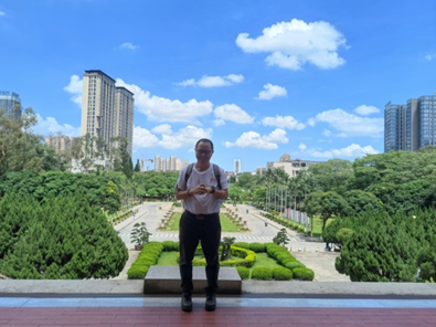 吴小安于华侨大学陈嘉庚纪念堂前(2022年6月)