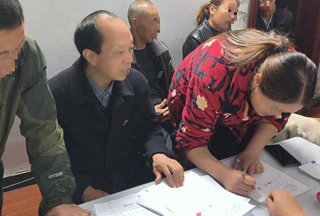 二、与所有农户沟通到位,为其介绍便捷解纷的方式和办法。对全家外出的农户,告知其可以委托代理人代为参与调解,代为提起司法确认申请。