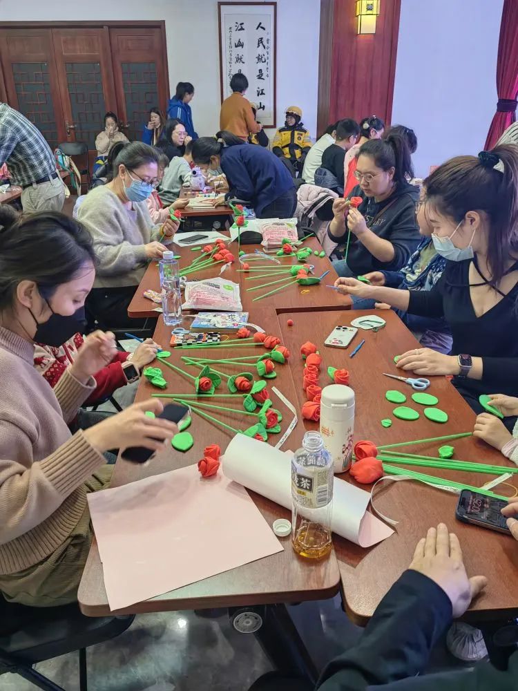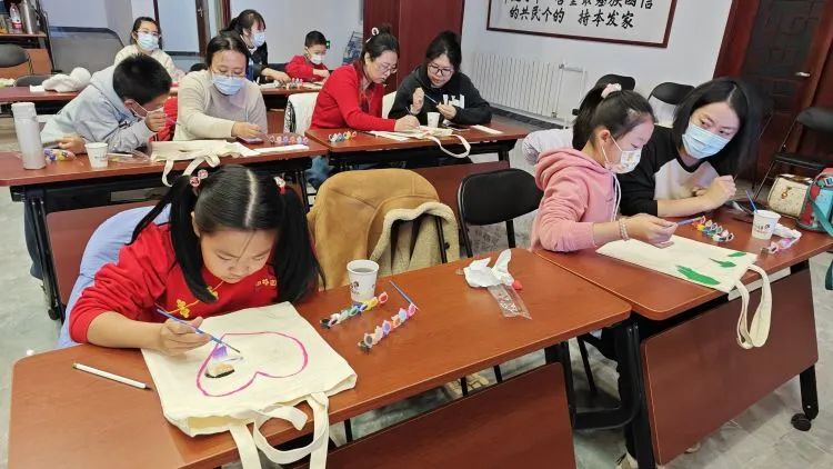 活动开始前,经过志愿者们的热烈讨论和商议,决定为忙碌的“驿姐”送上美丽热情的手作玫瑰花和环保实用的手绘帆布袋。在活动现场,小志愿者们说干就干,按照年龄分为两组,小童组制作黏土玫瑰花,大童组则绘制帆布袋。海淀区家庭教育研究会的老师们为小志愿者们提前准备好了手工黏土等材料,详细介绍了手作玫瑰花的制作方法,展示了环保黏土花束的成品,栩栩如生的玫瑰花瞬间吸引了志愿者们的目光,志愿者们跟随示范,将黏土搓圆、捏扁、组装……在家长的协助和引导下,孩子们用稚嫩的小手,搭配不同颜色的黏土,将普通的黏土变成花瓣,错落有致地搭配成漂亮的花束,很快,惟妙惟肖的玫瑰花在小小的指尖朵朵绽放。