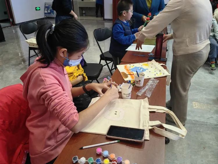 大童组的小志愿者们充分发挥想象力,兴致勃勃地精心选色绘制,不一会儿,一幅幅鲜艳明快的图案呈现在环保袋上,绚丽的颜色和充满创意的图案让环保袋鲜活生动起来,一个个“限量版”帆布袋不只是装载物品,更承载着志愿者们的美好祝福。