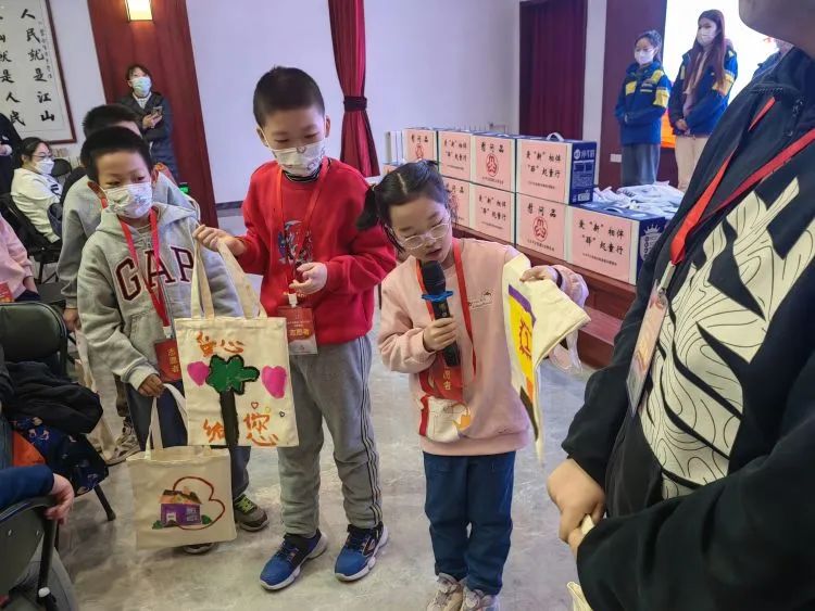 小志愿者们手捧玫瑰花和环保袋,小心翼翼地将一份份心意送至“驿姐”代表的手中,“平常都是我们为大家送快递,今天收到家长和孩子们送来的特制玫瑰花,很温暖、很感动!”“孩子们制作的环保袋,既新颖又有趣,这份礼物非常特别!”收到小志愿者们的礼物,她们的心里暖意融融,喜悦之情溢于言表。
