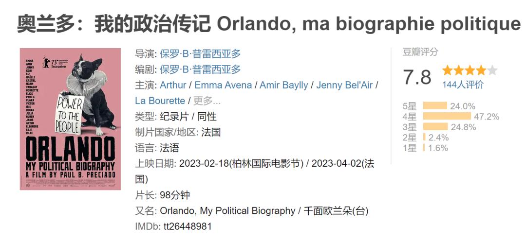 推荐语:这是一部创意非常新颖的作品,导演召集了26名各个年龄段的跨性别者与非二元性别人士来饰演弗吉尼亚·伍尔夫笔下的不同阶段的奥兰多,在真实人物与虚构文本之间形成了一个跨度百年的巧妙互文,并勾勒出丰富的当代群像。其独特的舞台形式与对性别政治的思考都成就了这部精彩的论文电影。结尾给书做手术那场戏极具巧思,充满想象力也是相当高级的表达。