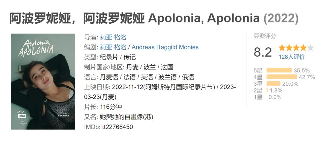 推荐语:今年在香港先后出现了《给十九岁的我》和《音乐人生》的伦理争议,拍摄者和被摄者不对等的权力关系成为热议的焦点。相比之下,《阿波罗妮娅,阿波罗妮娅》的拍摄过程则堪称人物纪录片的典范。在这部时间跨度长达十三年的纪录片中,拍摄者和被摄者几乎达成了相互信任的默契(女主角的裸露镜头在成片中得以保留),甚至是共同成长的地步。我相信一部分原因是身为艺术家的彼此理解,当然最重要的是真诚和尊重。