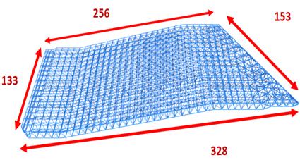 网架构造示意图项目团队制定了把整个网架划分为5块、分别进行安装的方案。每个分块网架就位前采用点动控制功能,对每个提升点姿态进行精调。