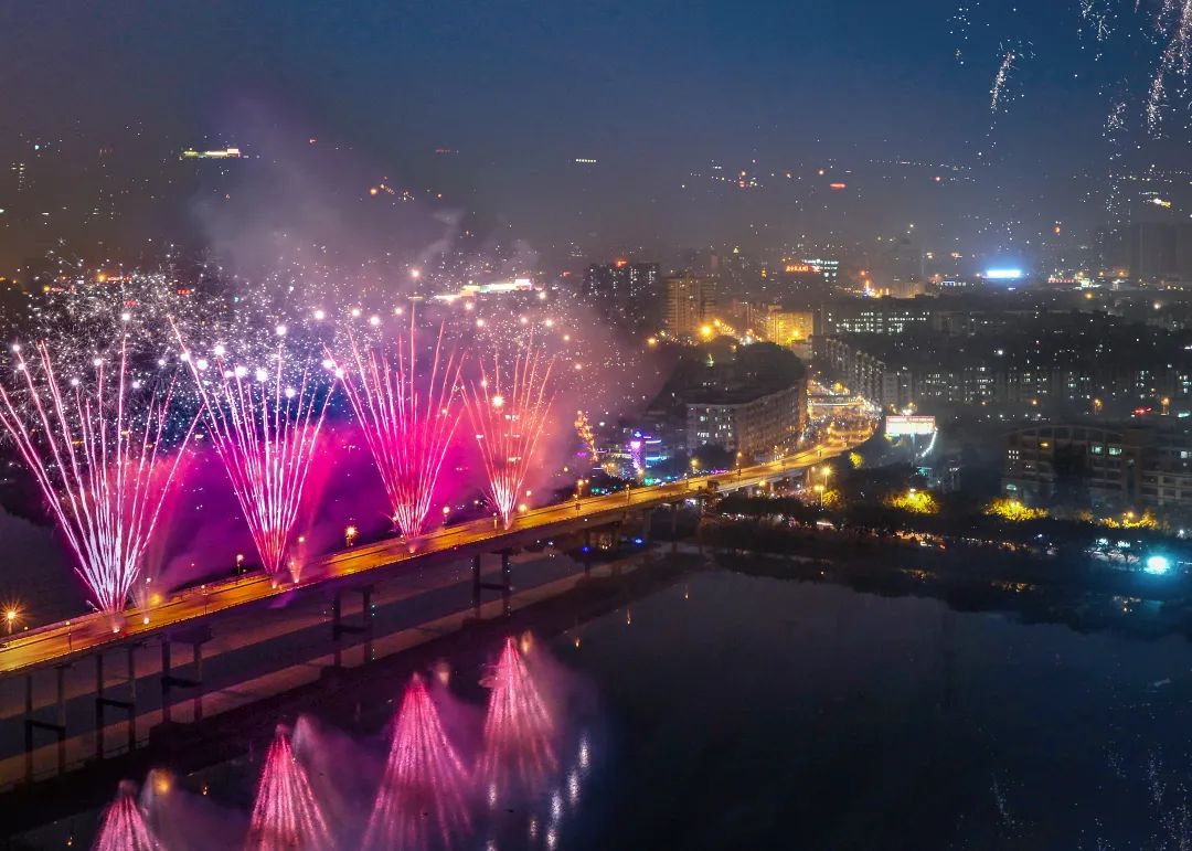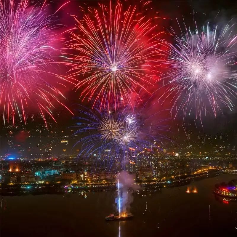 约30分钟大型烟火秀点亮西江之滨